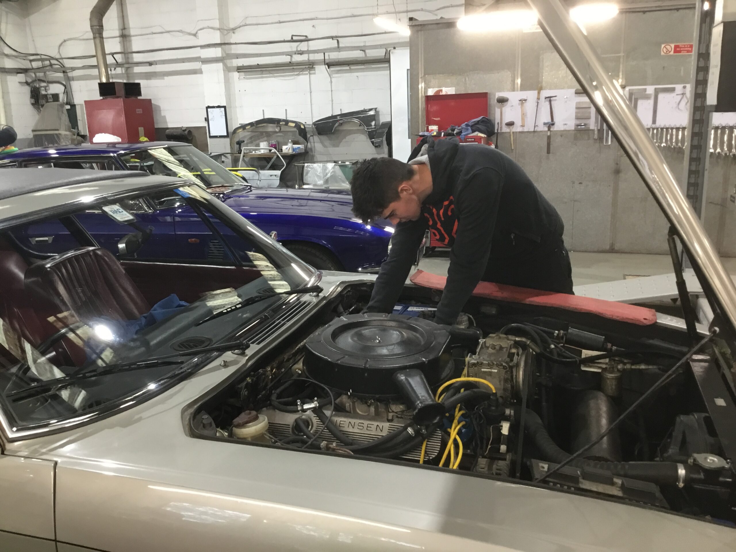 Next, I speak to Ed Grose (pictured left). Now 18 years old, Ed started working at Jensen specialist, Cropredy Classic Cars, after he left engineering college at 16. He is in the process of switching to HSA 9 based at Bicester which will save him a lot of travelling when on ‘release’ weeks. His daily driver is the teenage chariot of choice, the ubiquitous Vauxhall Corsa, but his real interest lies in his classic Triumph Toledo. Sadly, the shows he would like to exhibit it at are off limits until he can get a realistic insurance quote. As regards the course he says: “It’s great. I’ve really learnt a lot and I get to work on a variety of vehicles not solely Jensens, which makes a change. I’ve worked on all sorts from historic aircraft tugs to MG Midgets.”