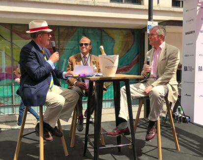 The Master, PM Richard Charlesworth and Liveryman Christopher Tate take time at The Concours on Savile Row to discuss all things Coachmakers. Read more in the next issue of Coachlines. (Photo courtesy of Liveryman David Barzilay.)
